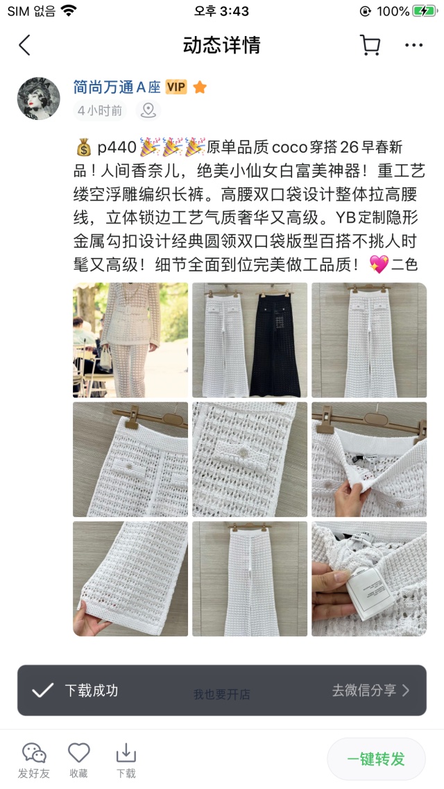 샤넬 CHANEL 여성 니트 팬츠 CHA286