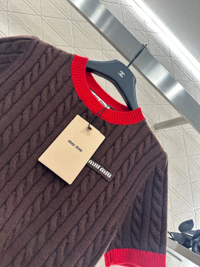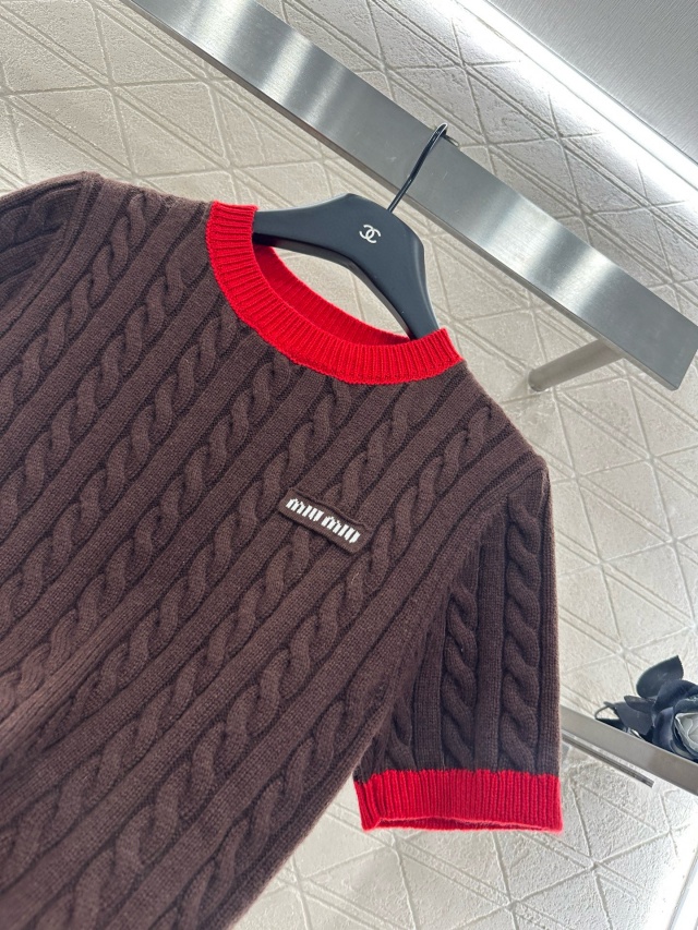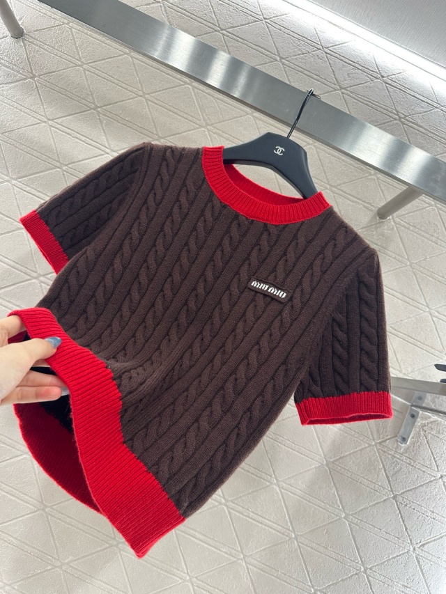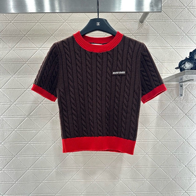 미우미우 MIU MIU 여성 라운드 니트 반팔 MIU195