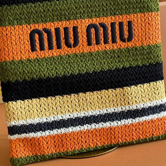 미우미우 MIU MIU 라피아 크로셰 우븐 토트백 5BG248 MUU031